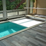 El cobertor automático y el semiautomático a taladro, pueden ser colocados bajo nivel del piso, quedando oculto el mecanismo y los rieles, brindando una armonía visual con el entorno, y sin que nada delate la presencia del cobertor, realzando la belleza natural de piscina.