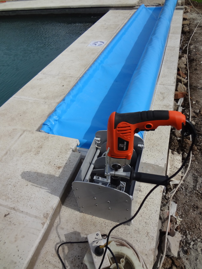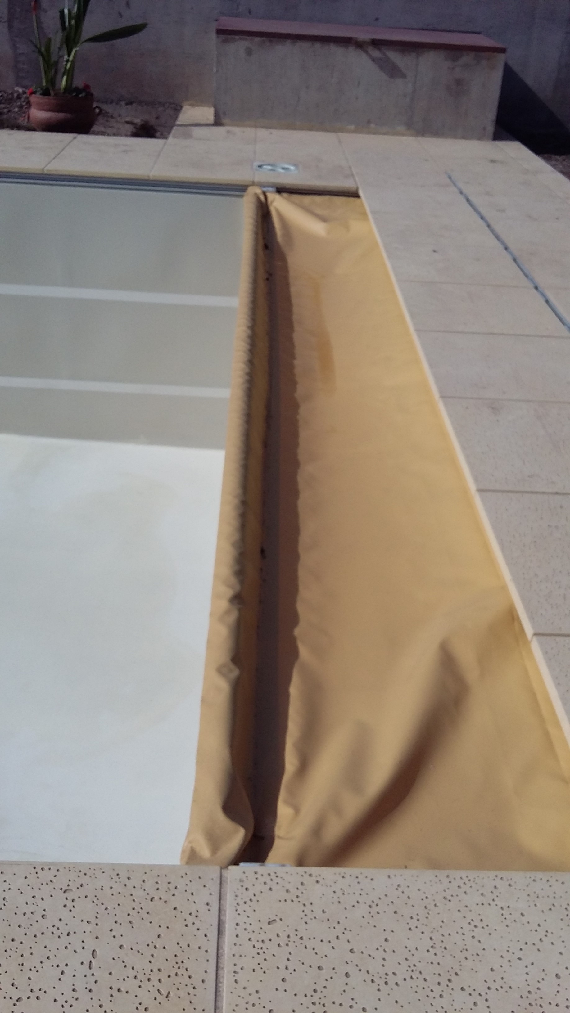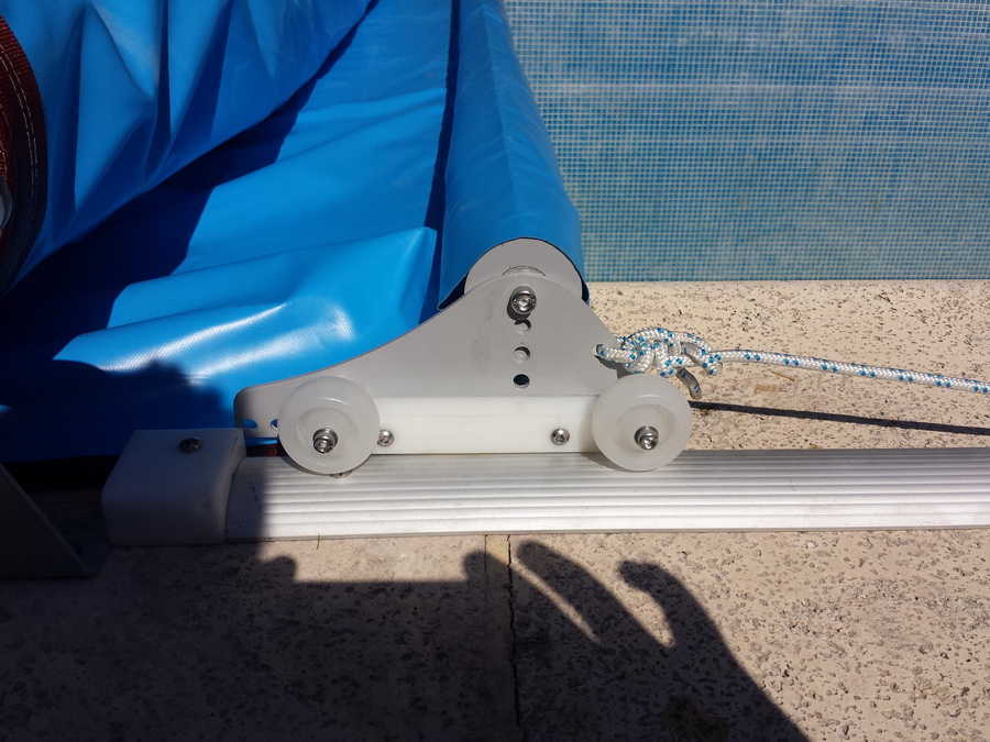 El perfil que permite el funcionamiento de la cubierta, esta diseñado especialmente para esta funcion, y su forma no estorba el normal uso de la piscina, puede pisarse sin molestias y nunca provocara golpes o heridas a los usuarios.