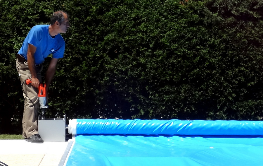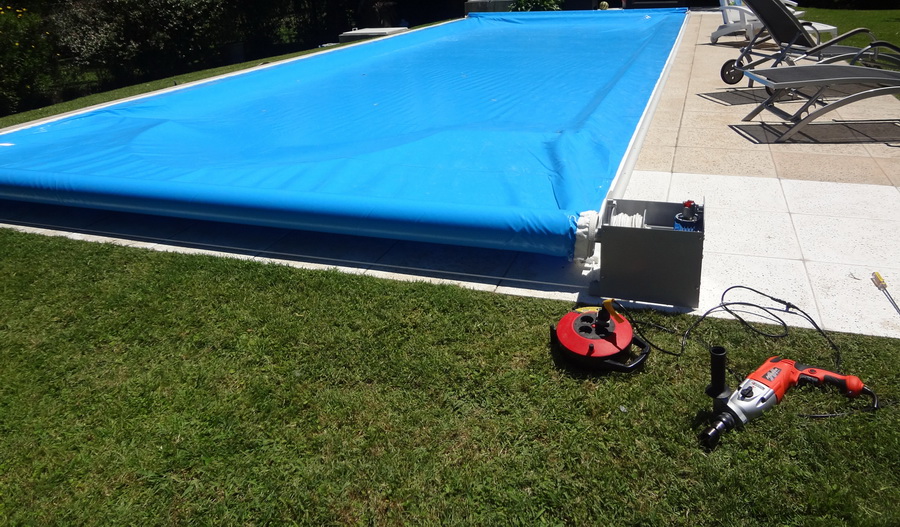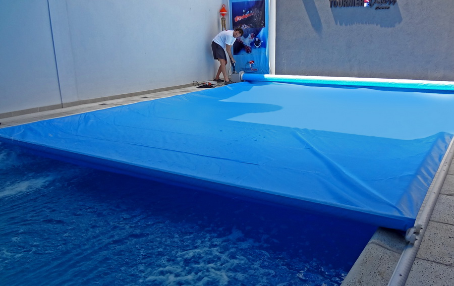 Todas nuestras cubiertas estan equipadas con una bomba especialmente diseñada para cubiertas de piscina. Esta bomba desagota automaticamente el agua de lluvia que pueda acumularse sobre la misma.